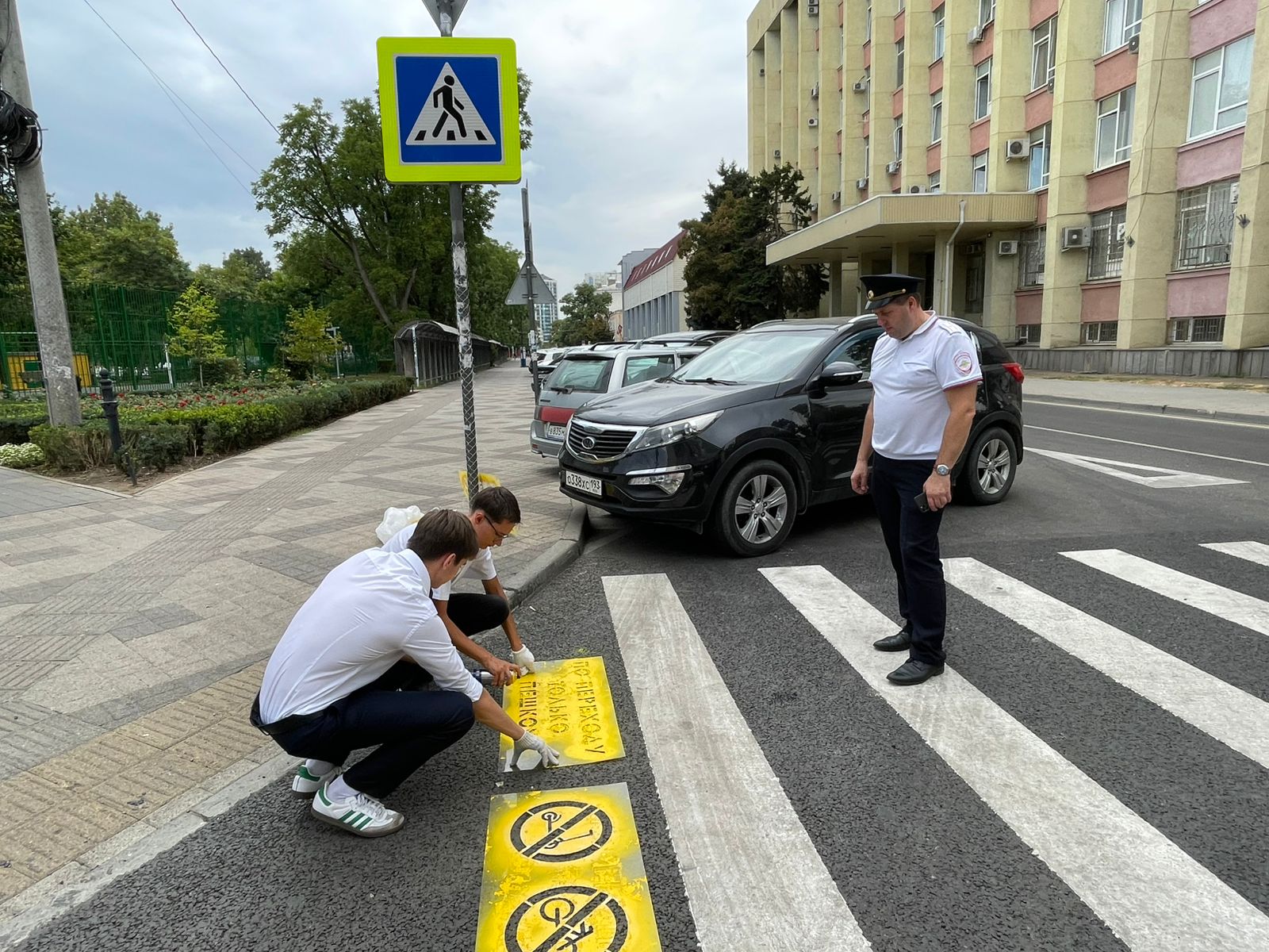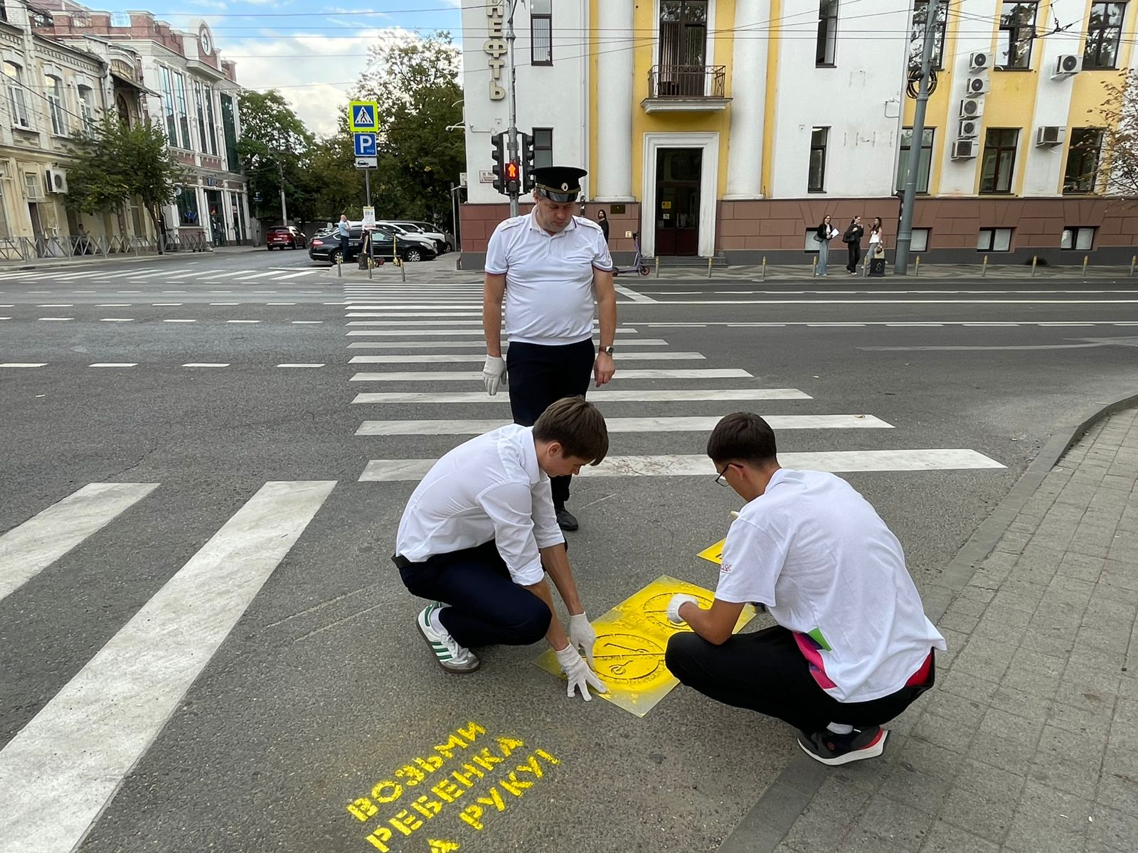 16 сентября 2025 года в г. Краснодаре состоялся очередной рейд в рамках проекта «Полезный трафарет» и Всероссийской недели безопасности дорожного движения. Представитель Уполномоченного по правам ребенка в Краснодарском крае, члены Детского общественного совета при Уполномоченном совместно с сотрудником Управления Госавтоинспекции ГУ МВД России по Краснодарскому краю нанесли на асфальте перед пешеходными переходами, ведущими в сквер «Дружбы народов», трафаретные надписи-напоминания, призывающие юных пешеходов и их родителей быть внимательными, соблюдать правила дорожного движения на пути к популярному у горожан месту отдыха детей и семей с детьми.