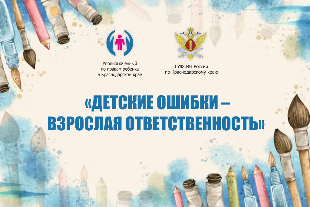 Уполномоченным по правам ребенка в Краснодарском крае и ГУФСИН России по Краснодарскому краю в преддверии празднования Всеобщего дня детей 20 ноября объявлен традиционный конкурс «Детские ошибки – взрослая ответственность» для несовершеннолетних, находящихся в пенитенциарных учреждениях